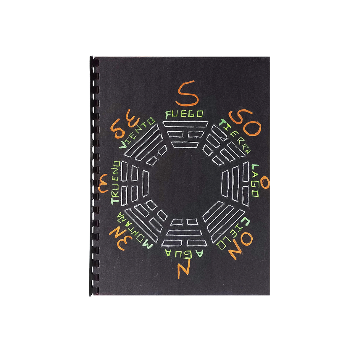 Agenda artesanal ejecutiva con diseño bordado en hilo blanco, hecha a mano con materiales reciclados y hojas cuadriculadas.