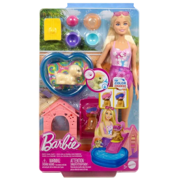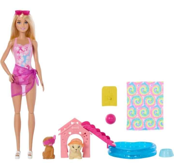 Barbie juego de fiesta de piscina para cachorros con muñeca y casa de perro