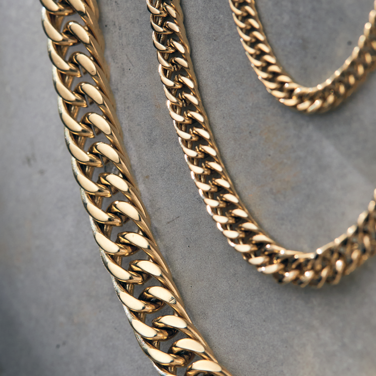 Cadena Barbada oro laminado 18K clásica y poderosa disponible en 3 grosores brillo intenso y garantía de por vida.