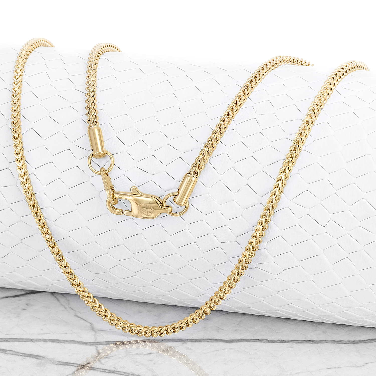 Cadena Franco oro laminado 18K 45 cm y 2 mm diseño resistente flexible con brillo duradero y garantía de por vida.