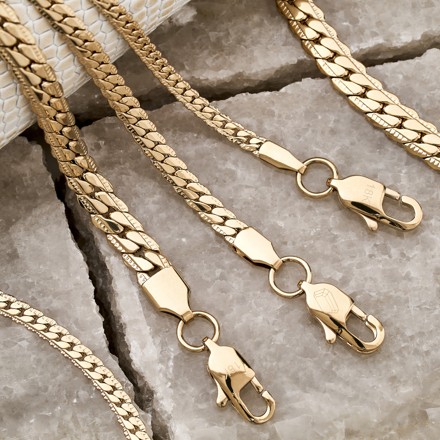 Descubre la elegancia en cada detalle con la Cadena Grabada en Oro Laminado 18K.