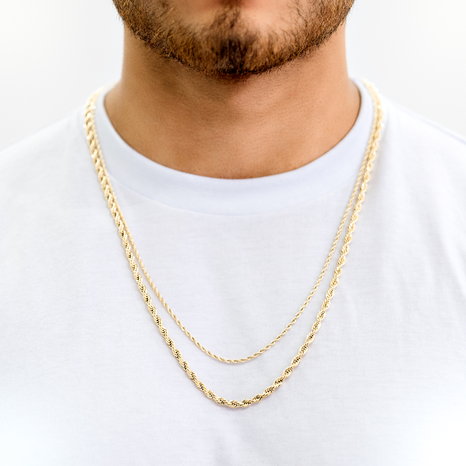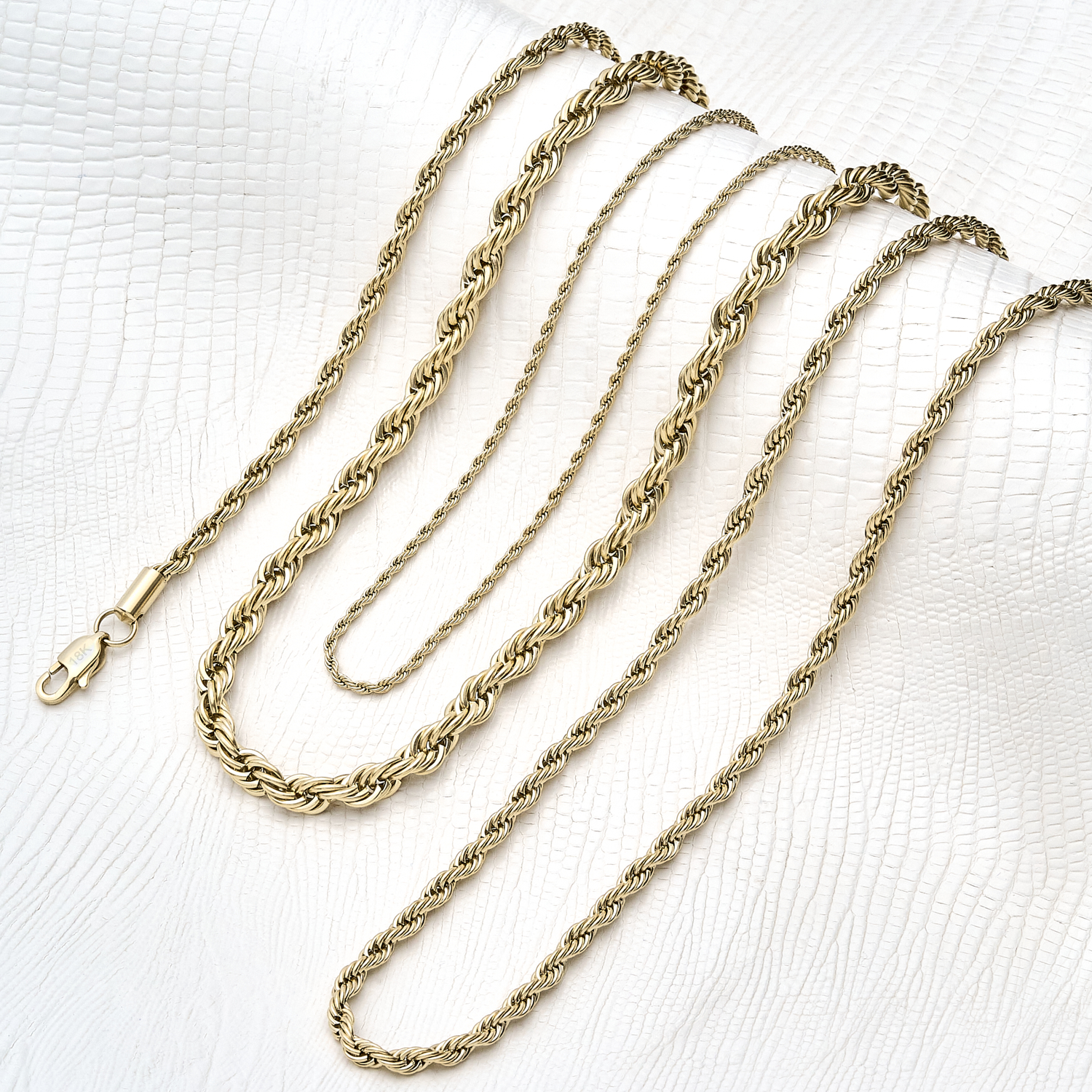 Con 65 cm de longitud, es ideal para quienes desean destacar con estilo y sofisticación. Su acabado en oro laminado 18K ofrece un brillo intenso y textura que imita fielmente el oro italiano, aportando una apariencia lujosa sin comprometer la resistencia.