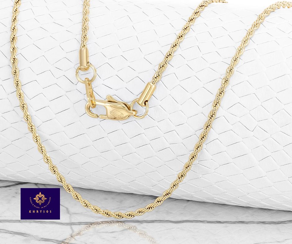 Con una longitud de 45 cm y un grosor de 2 mm, su estilo clásico y sofisticado es ideal para complementar cualquier look, ya sea para ocasiones especiales o uso diario. El acabado en oro laminado 18K ofrece un brillo intenso y una textura que emula el prestigioso oro italiano, garantizando un accesorio duradero y de alta calidad.