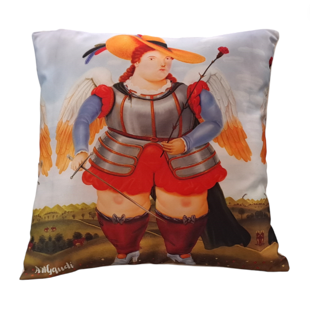 Este cojín decorativo presenta la obra “San Miguel Arcángel” del maestro Fernando Botero, reconocido por sus formas voluminosas y armoniosas. Inspirado en la espiritualidad y el arte, esta pieza combina simbolismo, elegancia y estilo contemporáneo, ideal para transformar cualquier espacio en un ambiente sereno y sofisticado.