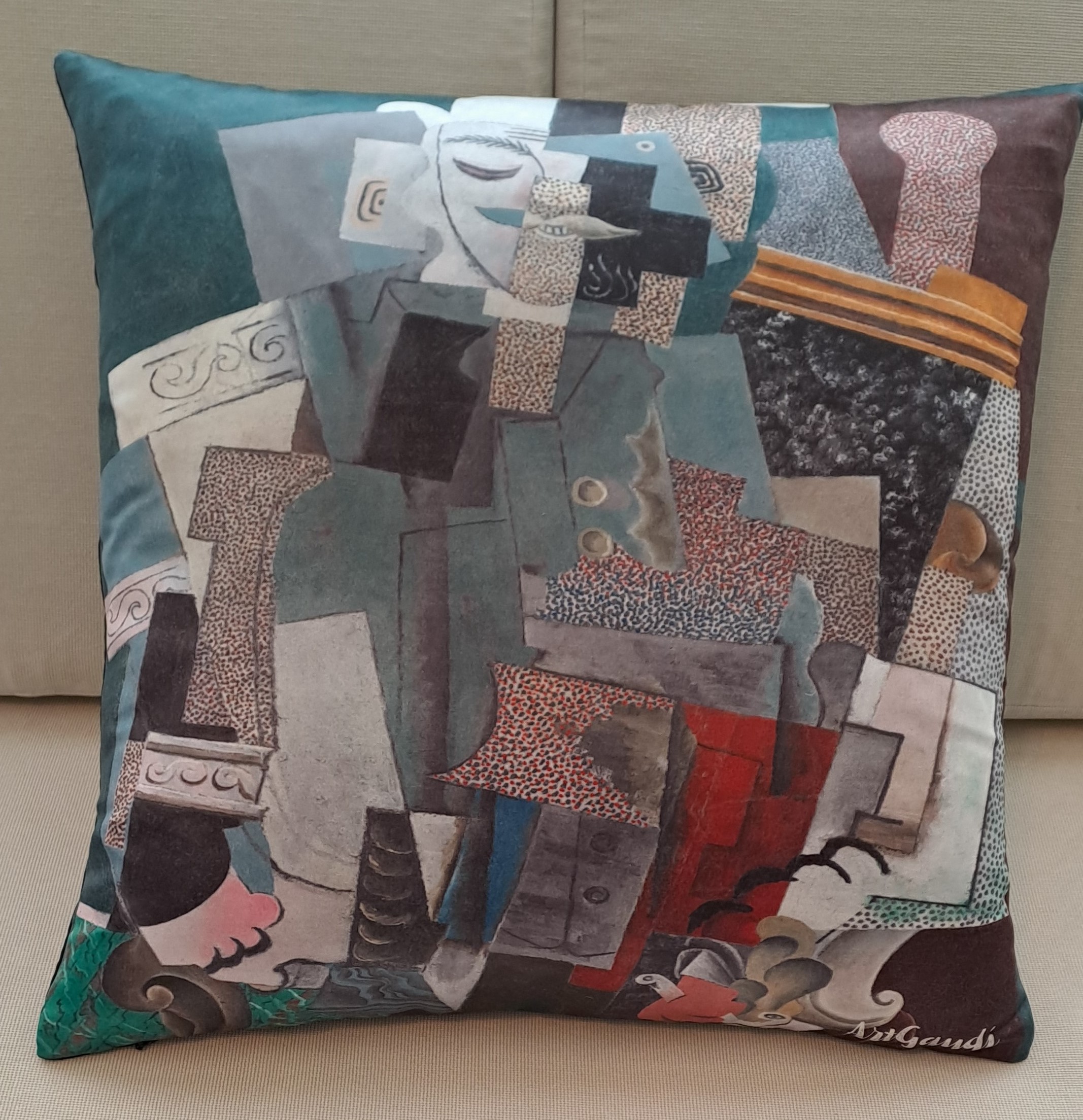 Cojín decorativo con obra de Picasso, estilo cubista, tela suave, impresión HD y relleno incluido listo para usar.