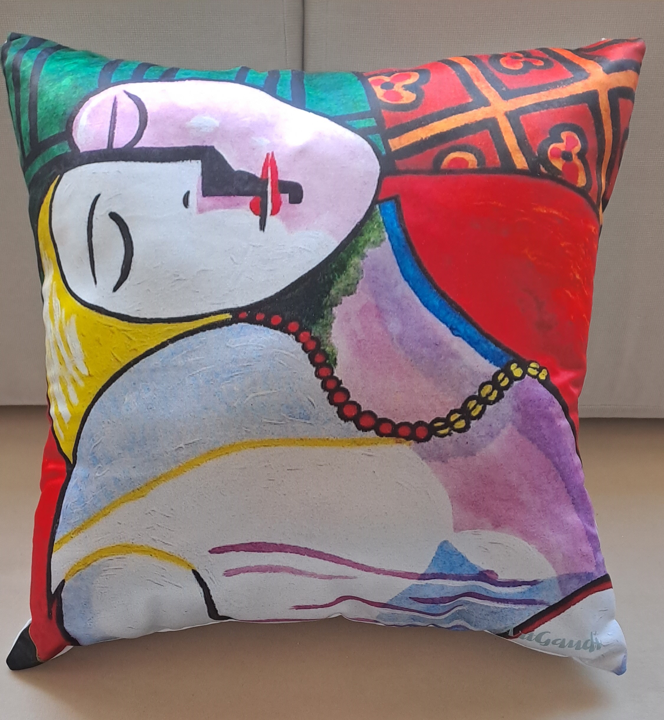 El cojín decorativo “El Descanso” de Pablo Picasso fusiona arte, serenidad y diseño contemporáneo en una pieza única que transforma cualquier espacio. Inspirado en la obra de 1932, este cojín reproduce a una figura femenina reclinada en actitud tranquila, representada con líneas suaves y colores cálidos, reflejo de una de las etapas más líricas e íntimas del maestro del cubismo.