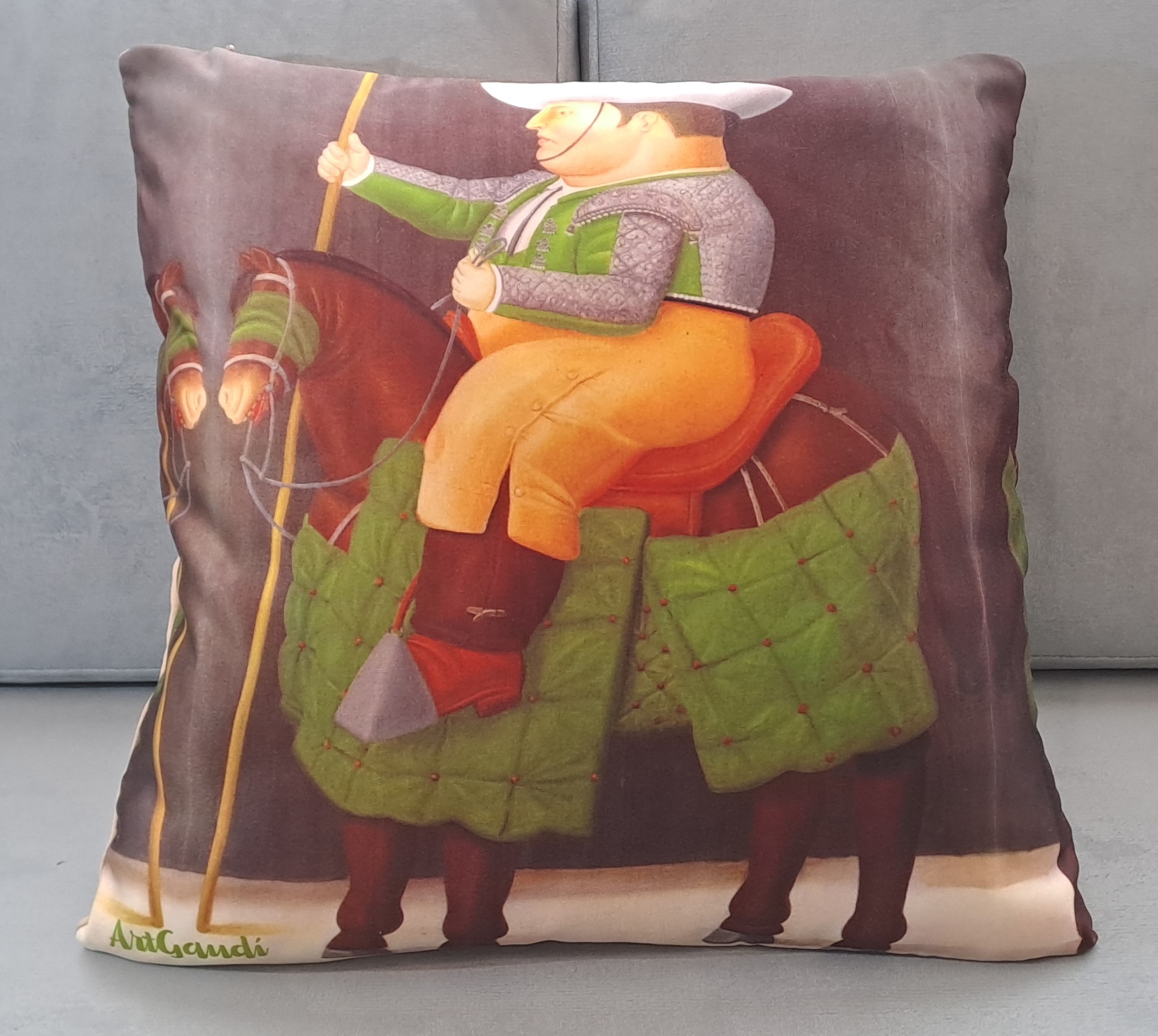 Etiquetas: arte contemporaneo, cojín artístico, cojín Botero, decoración elegante, El Picador