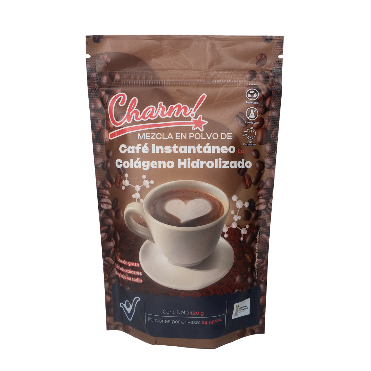 Bebida nutritiva con colágeno hidrolizado y café instantáneo que aporta energía, bienestar y cuida piel, cabello y articulaciones.