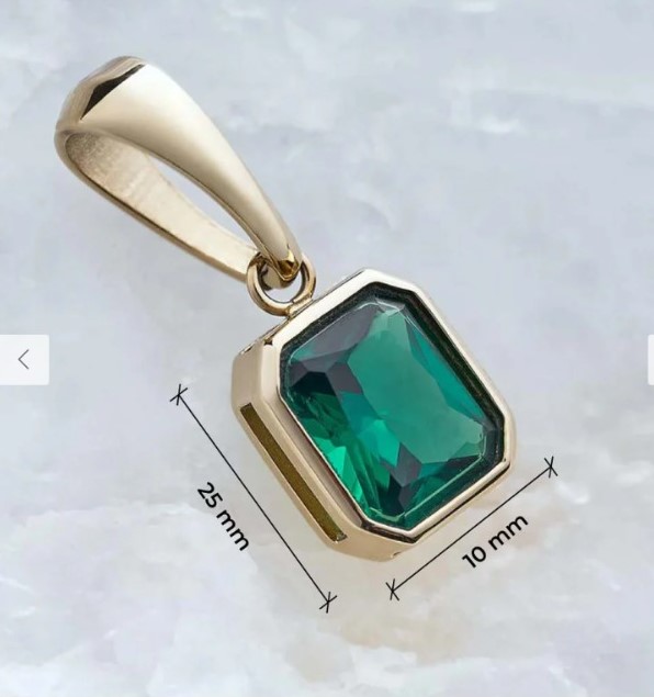 En el centro de esta pieza destaca una gema verde de tono intenso, que evoca vitalidad, equilibrio y conexión con la naturaleza. Su forma estilizada y dimensiones ideales (25 mm x 10 mm) le otorgan una presencia sutil pero impactante, perfecta para quienes valoran los detalles con significado.