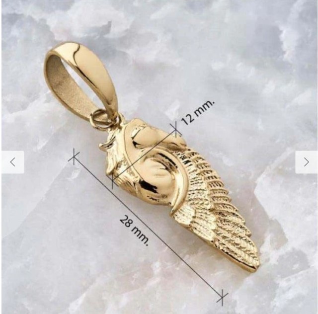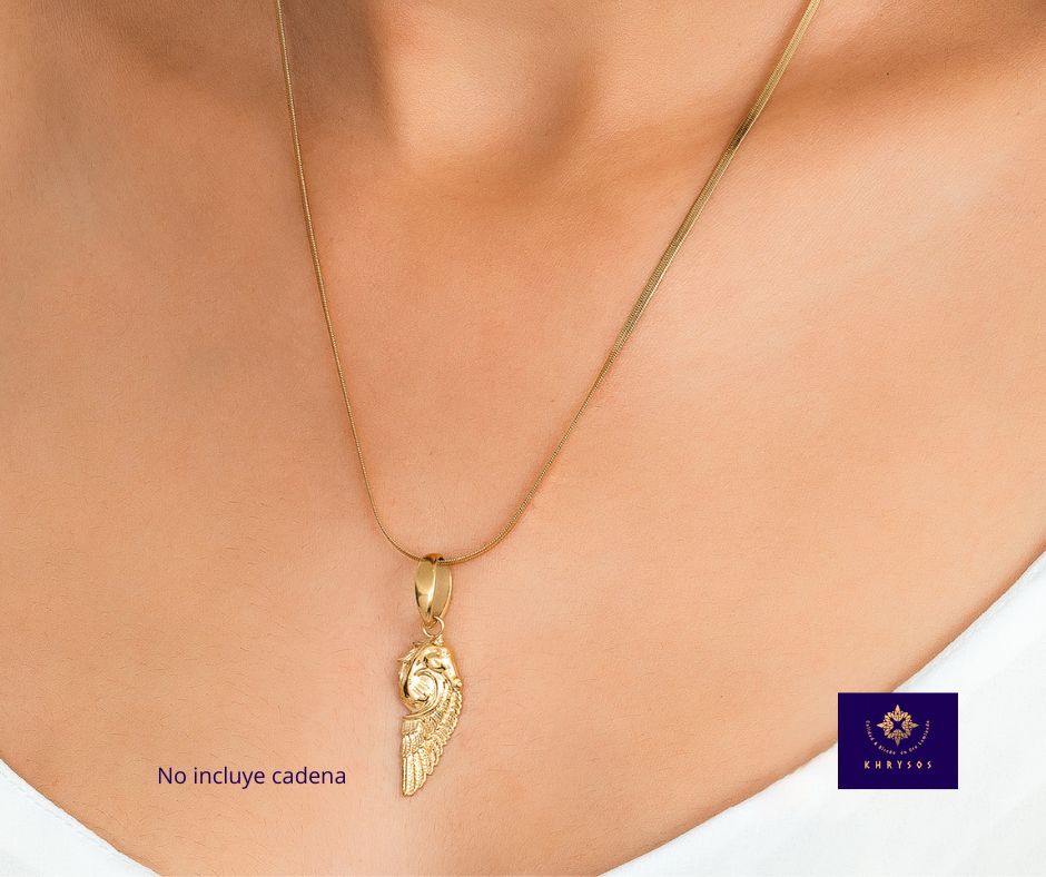 Elaborado en oro laminado premium, este dije destaca por su acabado brillante y resistente, con un color y textura similares al oro italiano. Sus dimensiones de 12 mm x 28 mm lo hacen ideal para lucir con cualquier estilo, ya sea en ocasiones especiales o como un distintivo diario de personalidad.