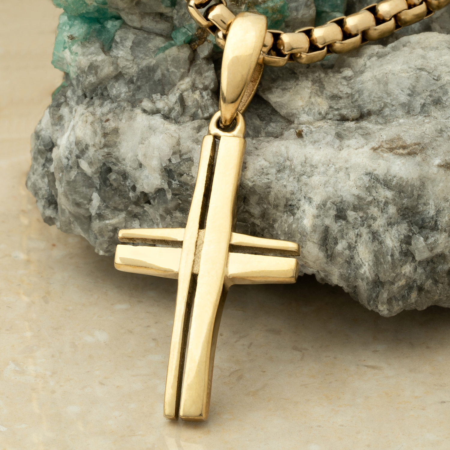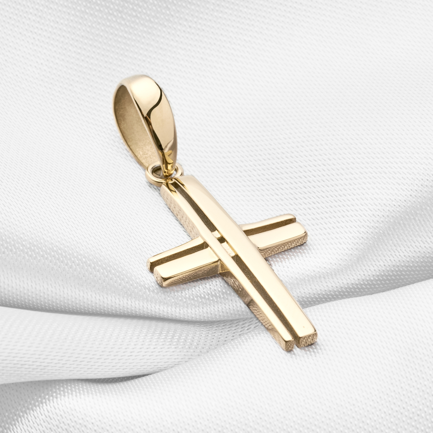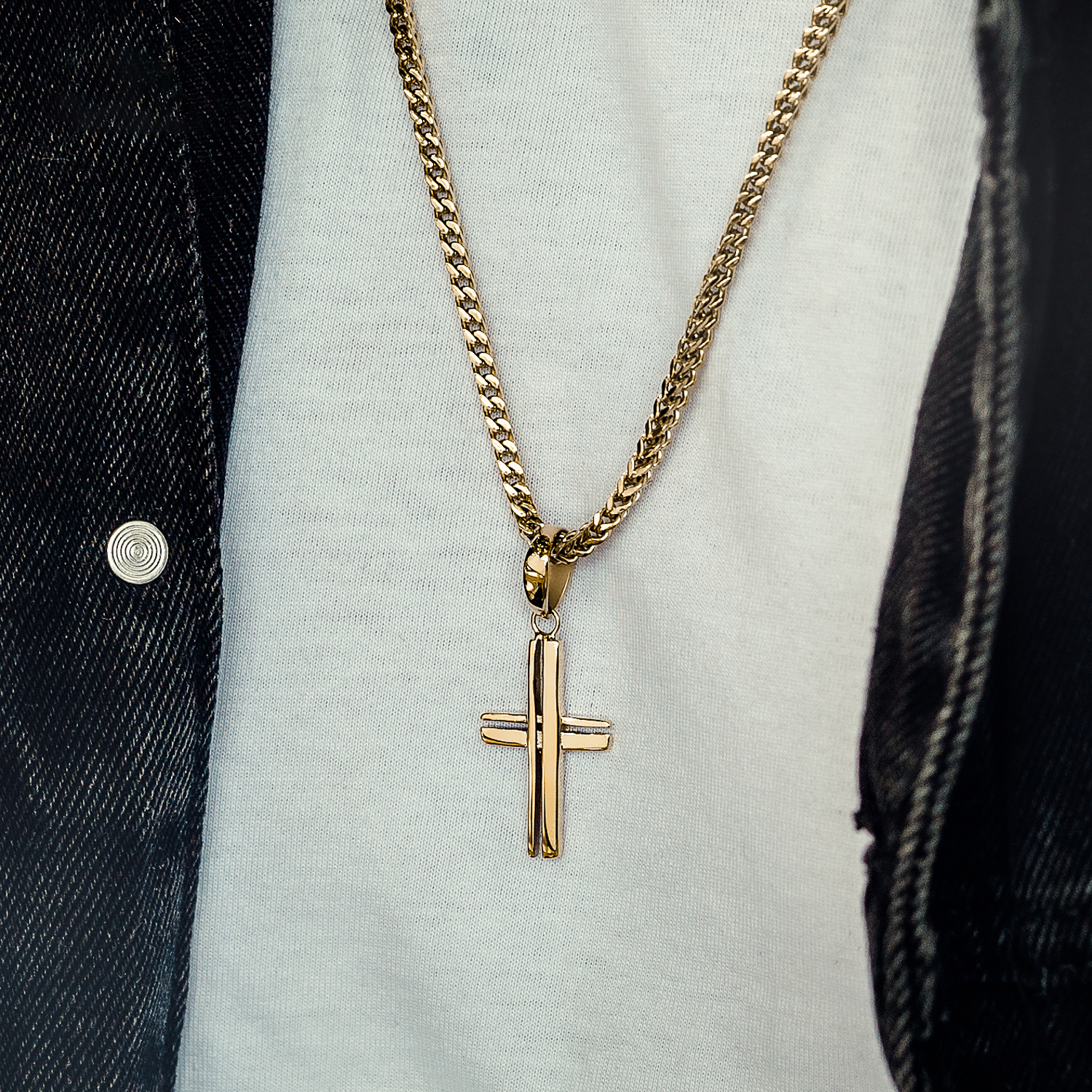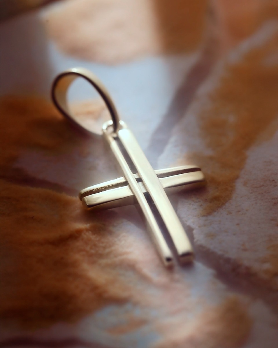 Cruz en oro laminado premium con brillo excepcional y garantía de por vida que asegura durabilidad y estilo.