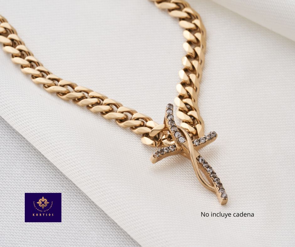 El Dije Cruz Kharys representa la fusión perfecta entre elegancia, simbolismo y brillo. Con un diseño fino y delicado, esta joya está elaborada en oro laminado de calidad premium e incorpora circones incrustados que reflejan la luz de forma sutil pero impactante, elevando su exclusividad y belleza.