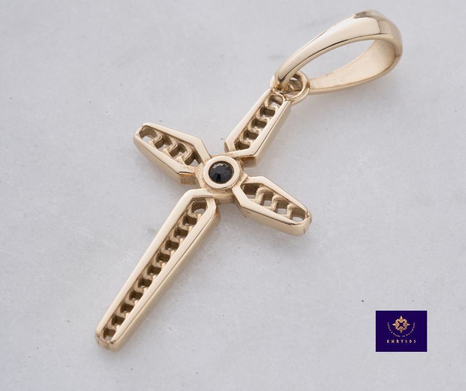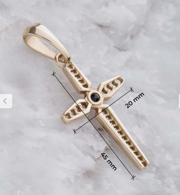Una gema negra en el centro añade un toque de distinción y personalidad, haciendo de esta cruz una joya única y versátil. Su brillo, color y textura evocan el prestigio del oro italiano, garantizando una apariencia lujosa y duradera.