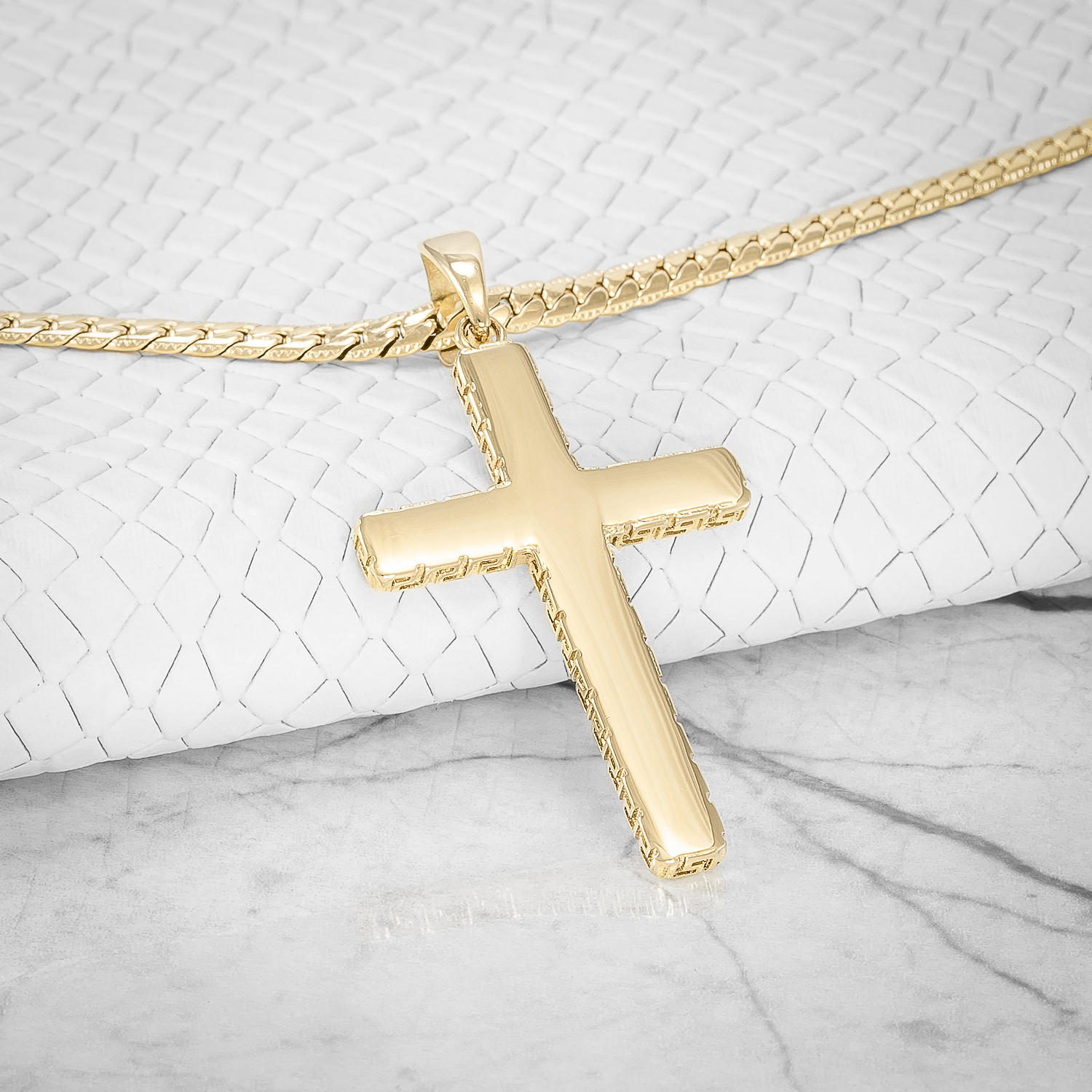 El Dije Cruz Tallada es una joya que resalta por su fusión entre tradición y elegancia. Con un diseño imponente, esta pieza ha sido cuidadosamente elaborada en oro laminado premium, ofreciendo un acabado de lujo que refleja sofisticación y buen gusto.