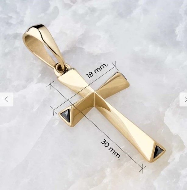 El Dije Xruz Vitalys es una pieza que destaca por su diseño moderno y su imponente presencia. Confeccionado en oro laminado de alta calidad, este dije de 30 mm x 18 mm incorpora gemas negras en los extremos de la cruz, aportando un toque de sofisticación, fuerza y estilo contemporáneo.