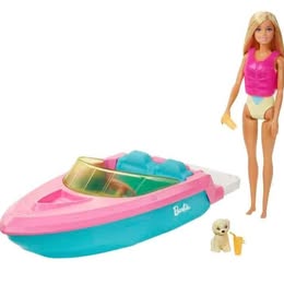 Lancha barbie con muneca y accesorios de playa