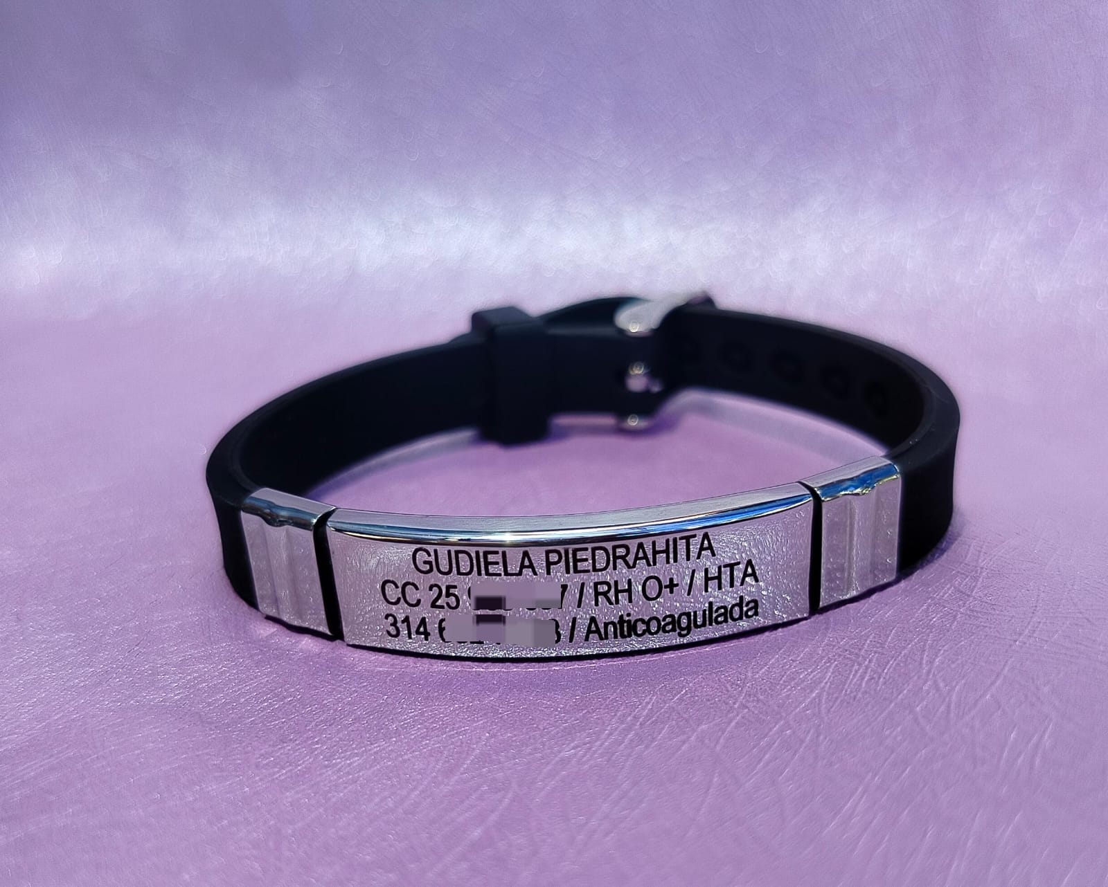 Etiquetas: brazalete colorido identificación, brazalete con placa acero, brazalete identificación neopreno, pulsera grabada láser, pulsera placa personalizable