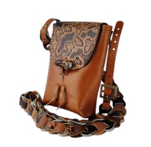 Bolso artesanal en cuero 100% bovino, liviano y exclusivo, con tapa estampada y costura italiana de alta resistencia.