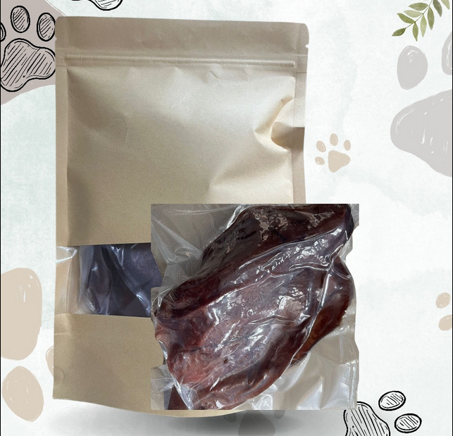 Snack natural de orejas de cerdo deshidratadas rico en proteínas que entretiene y favorece la salud dental de tu perro.