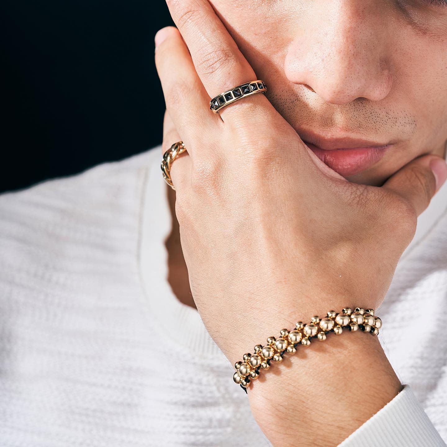 Pulsera trenzada con balines en oro laminado 18K y diseño tejido negro con garantía de por vida.