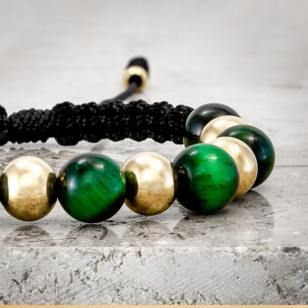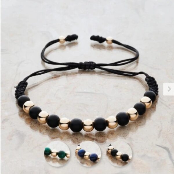 Pulsera con balines de 6mm y piedras naturales. Estilo moderno con oro laminado 18K y garantía de por vida.