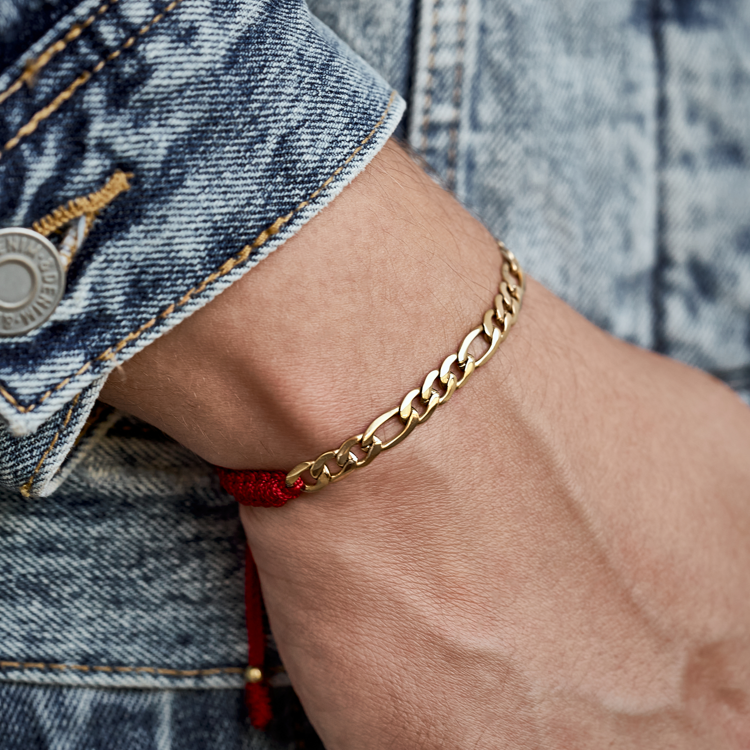 Pulso Carter en oro laminado 18K con hilo ajustable. Elegancia moderna y durabilidad con garantía de por vida.