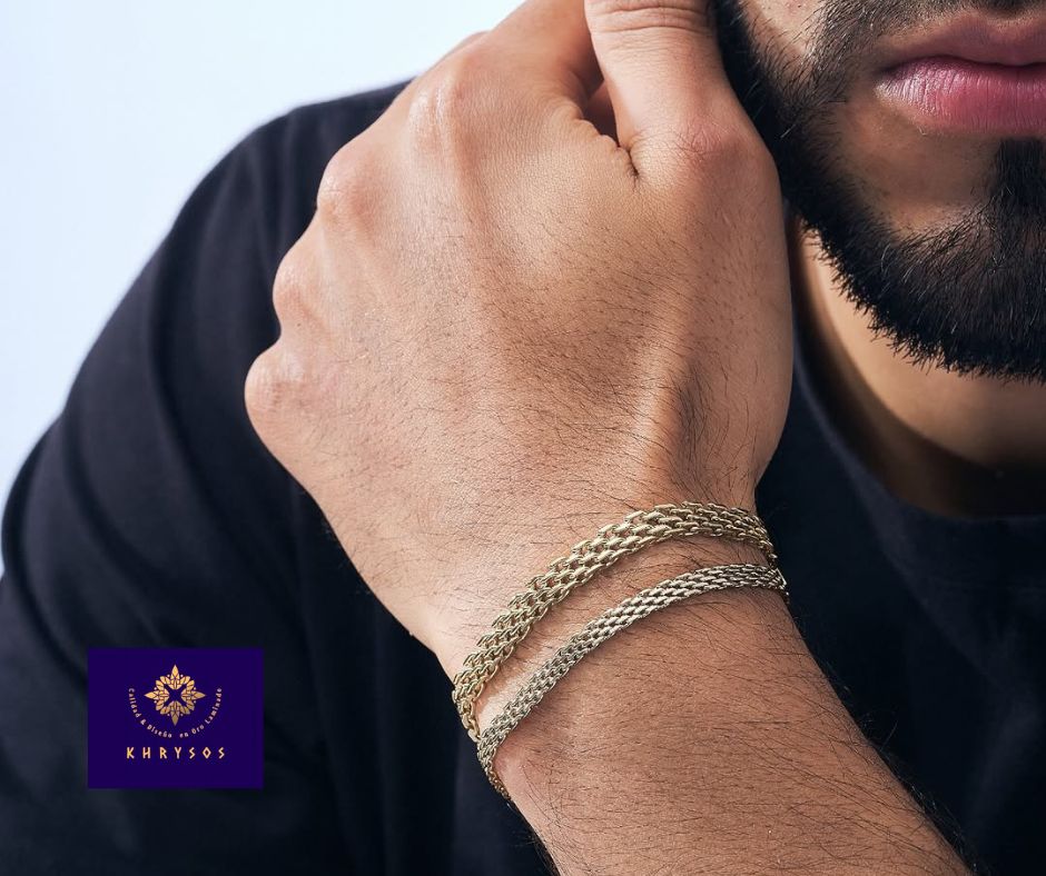 Etiquetas: color y textura del oro italiano, con una durabilidad superior que garantiza una joya impecable por años. Ideal para quienes buscan una pieza elegante, El Pulso Chinesco redefine la elegancia masculina y unisex con un diseño que fusiona sofisticación, fortaleza y estilo. Su tejido clásico Chinesco, ideal para quienes desean marcar presencia. Ajustable entre 17 cm y 21 cm, moderna y con presencia. Disponible en dos grosores: 4 mm: Refinado y versátil, ofrece el brillo, oro laminado, perfecto para un estilo discreto pero distinguido. 6 mm: Más robusto e imponente, proyecta carácter y distinción en cada detalle. Fabricado en oro laminado 18K, pulseras, pulso chinesco, reconocido por su acabado entrelazado y resistente