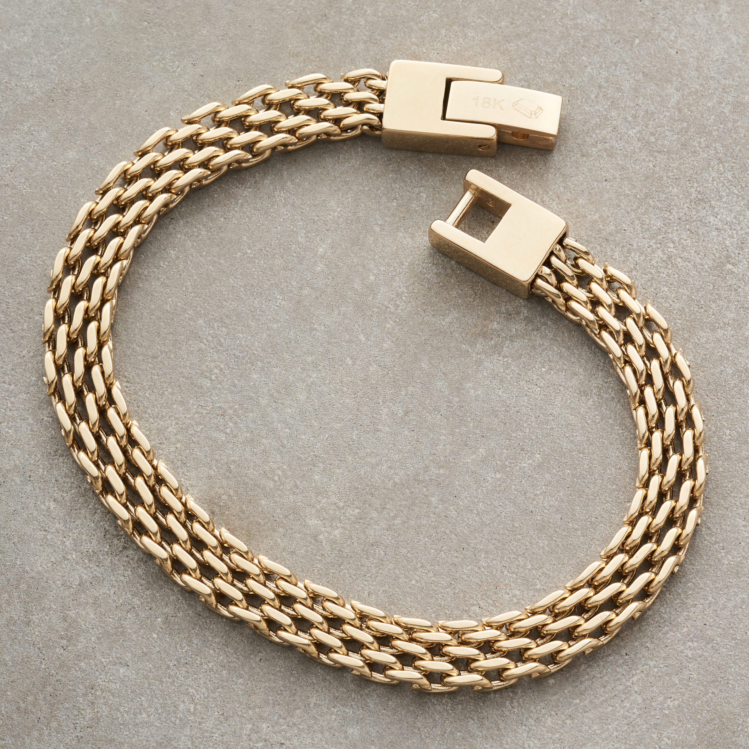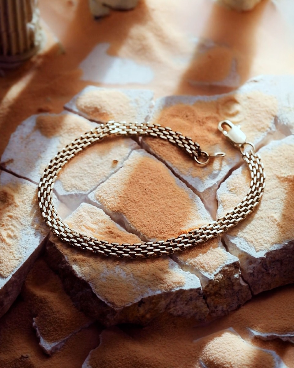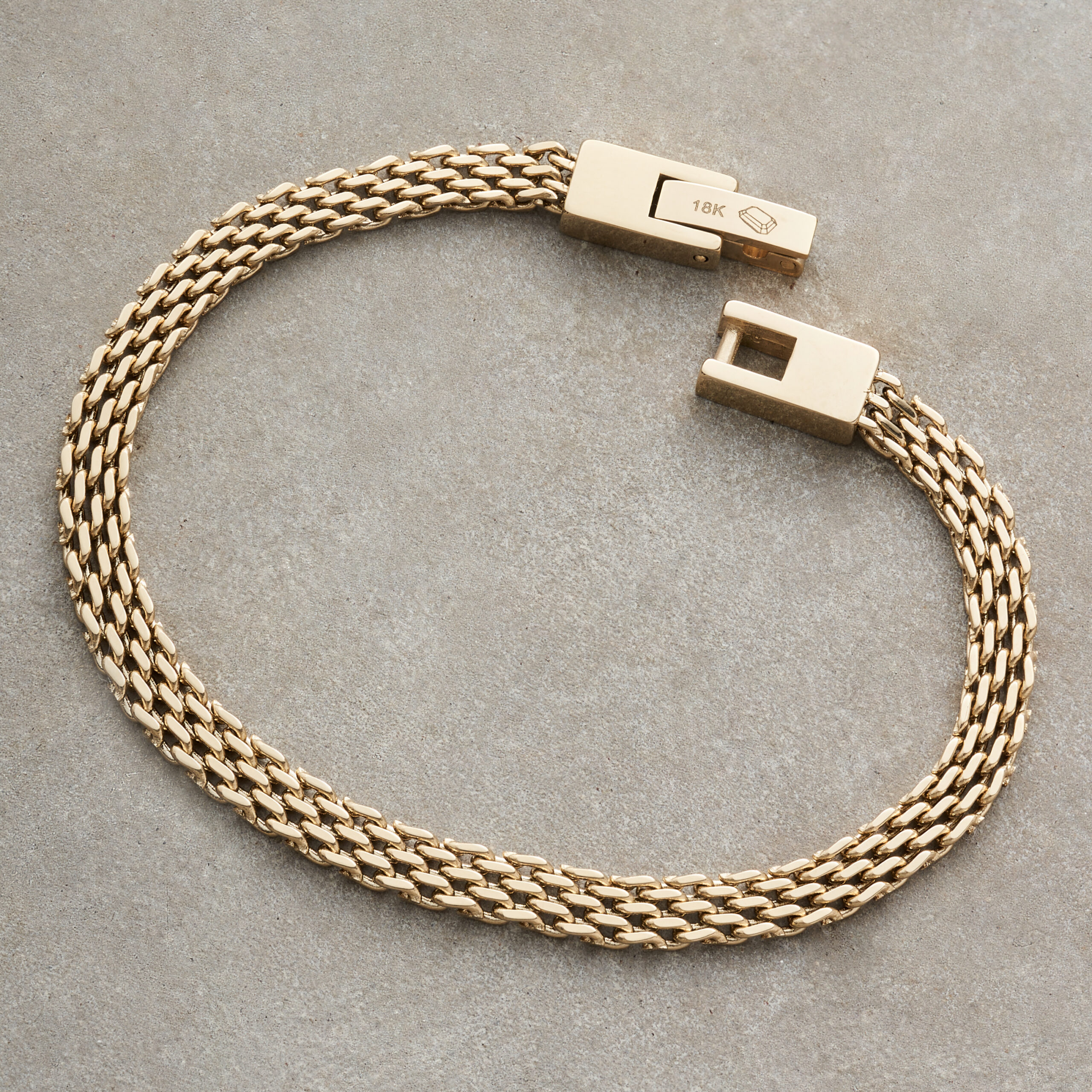 Pulso Chinesco en oro laminado con tejido clásico y elegante. Diseño robusto, brillante y garantía de por vida.