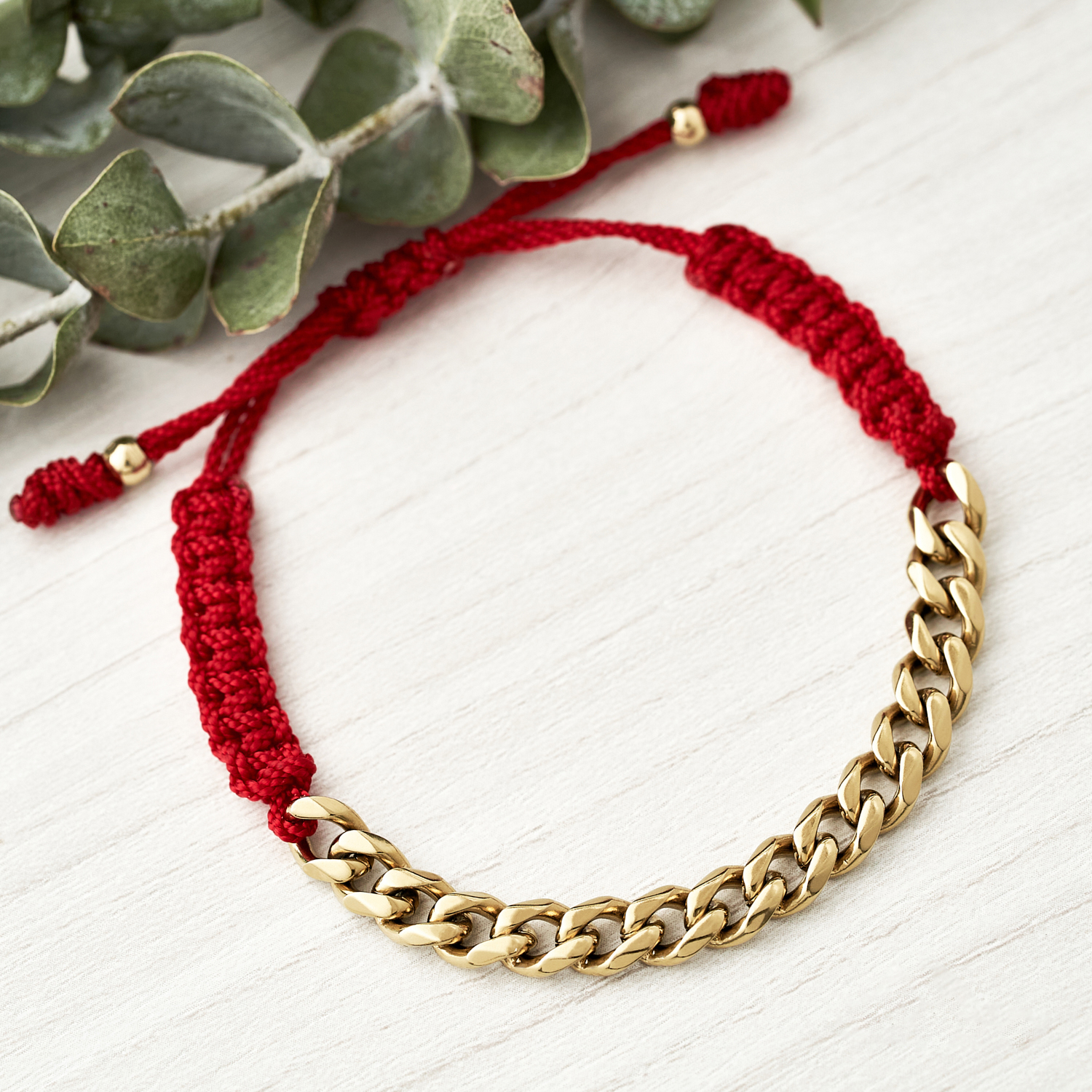 Etiquetas: accesorios unisex, joyería garantizada, oro 18k italiano, pulsera cubana oro laminado, pulsera hilo rojo