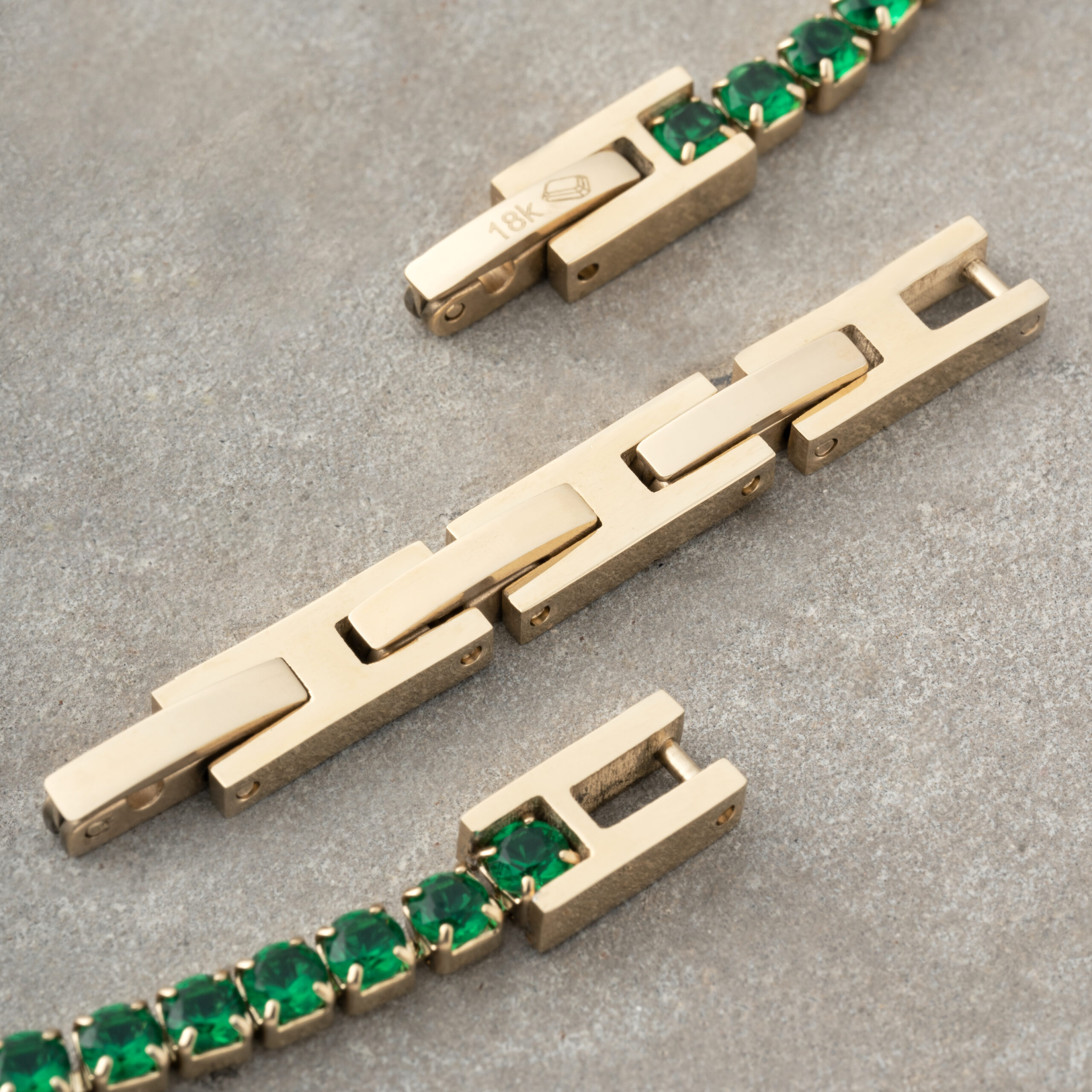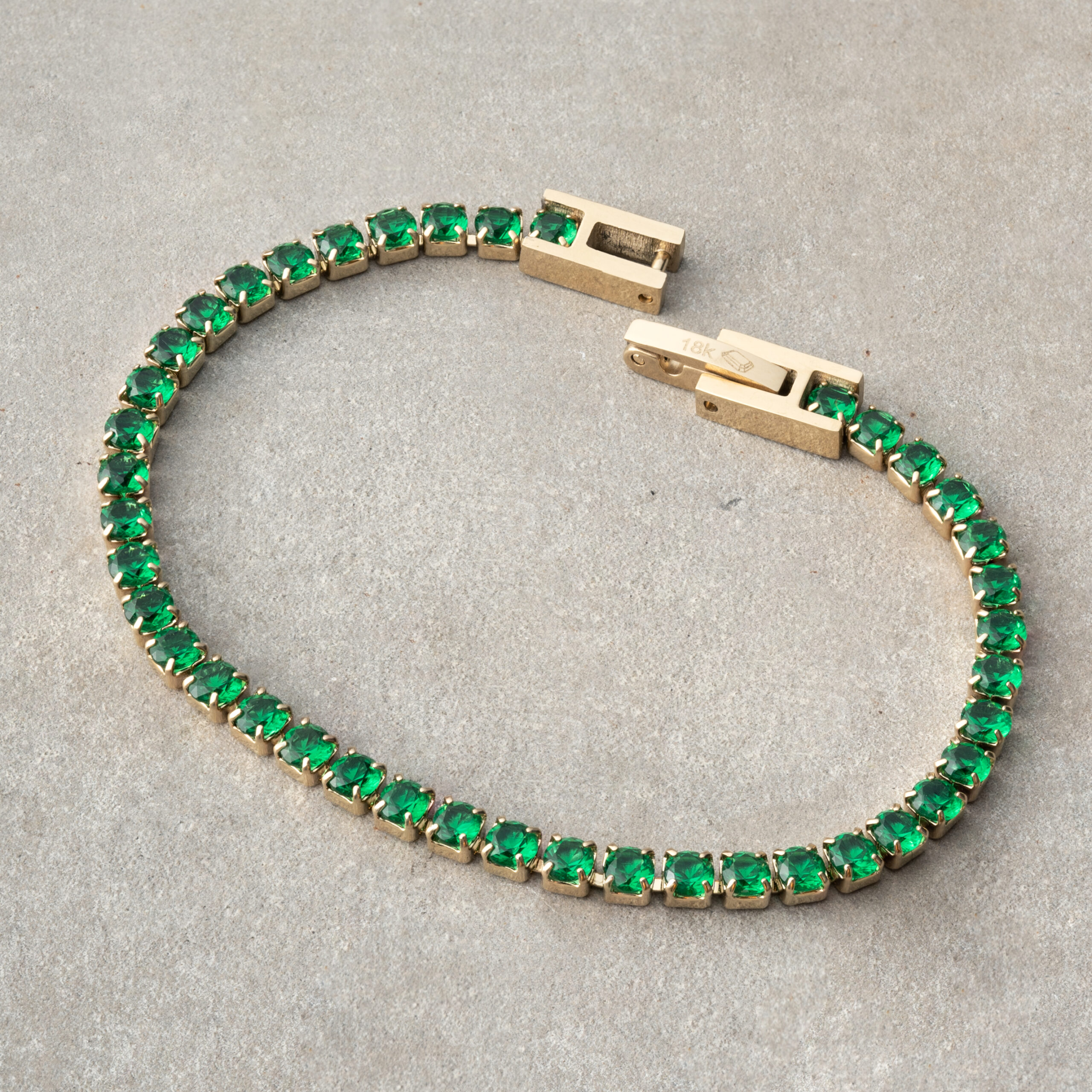 Pulso Tennis en oro laminado 18K. Diseño unisex con brillo italiano en tonos Verde, Blanco o Negro.