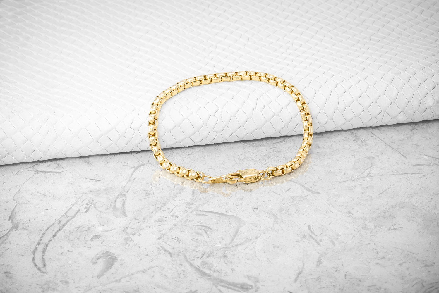 Pulso unisex en oro laminado 18K, diseño veneciano fino y brillante con garantía de por vida y acabado tipo oro italiano.