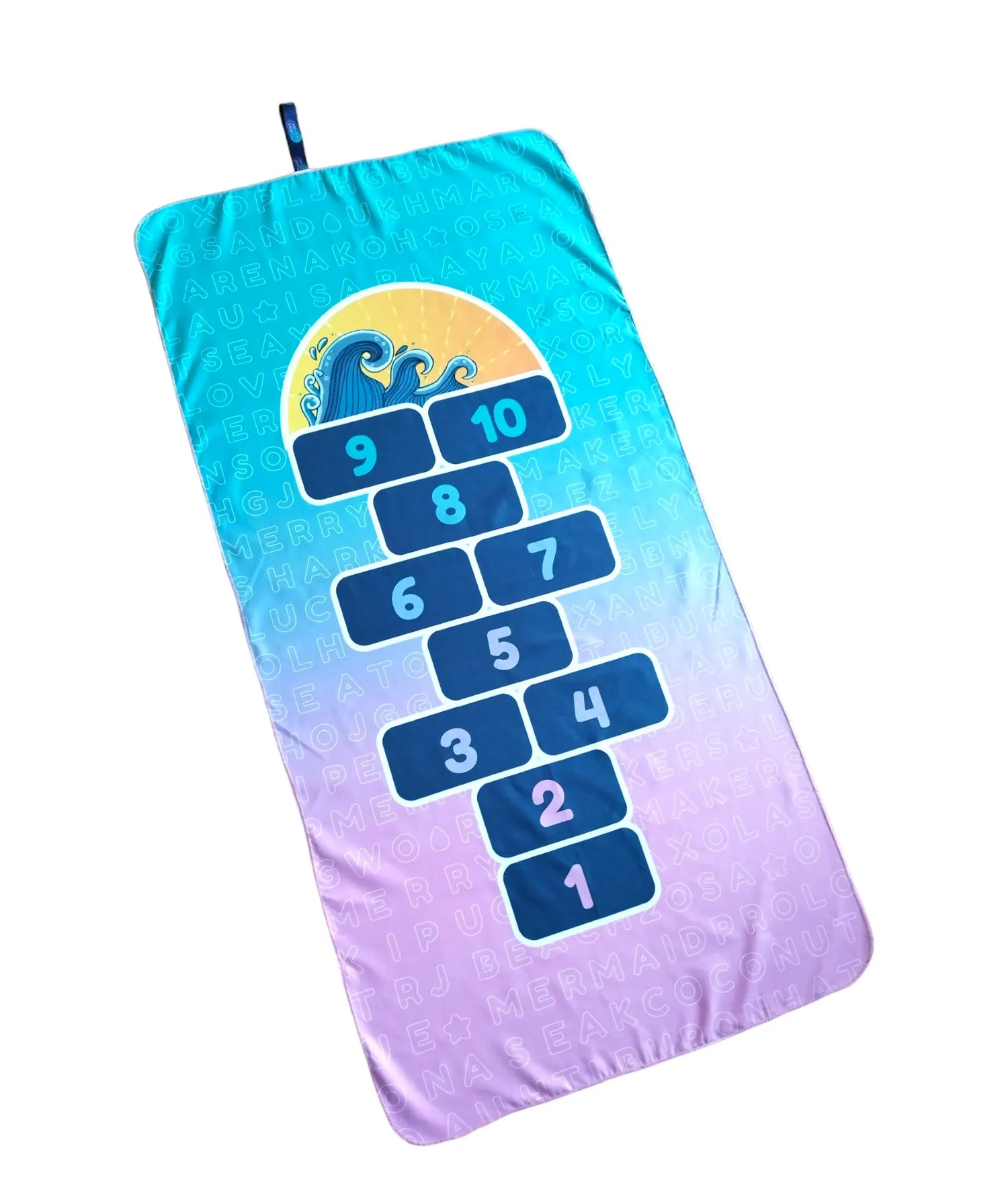 Toalla ecológica de microfibra estampada, repelente a arena y de secado rápido.