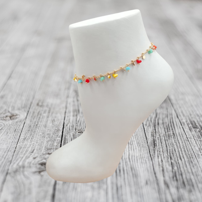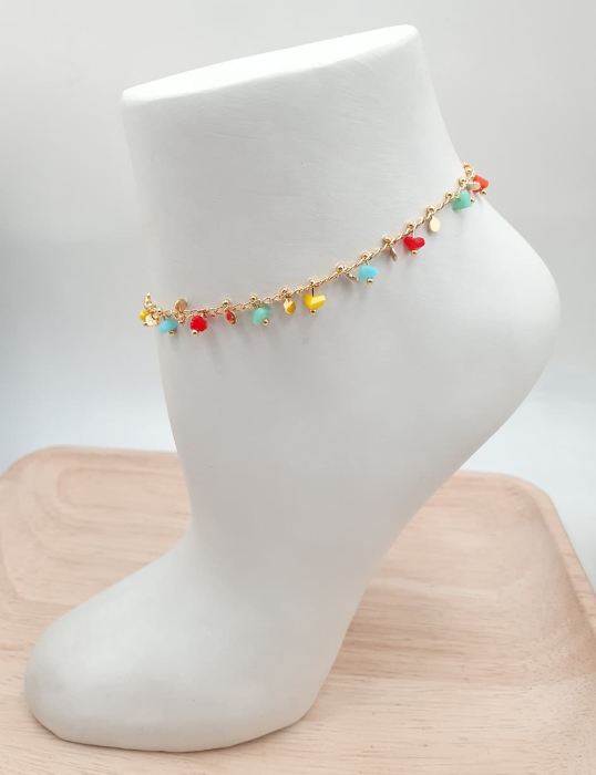 Diseño artesanal con chips de cristal y detalles con baño en oro ideal para aportar brillo y sofisticación a tu estilo diario.