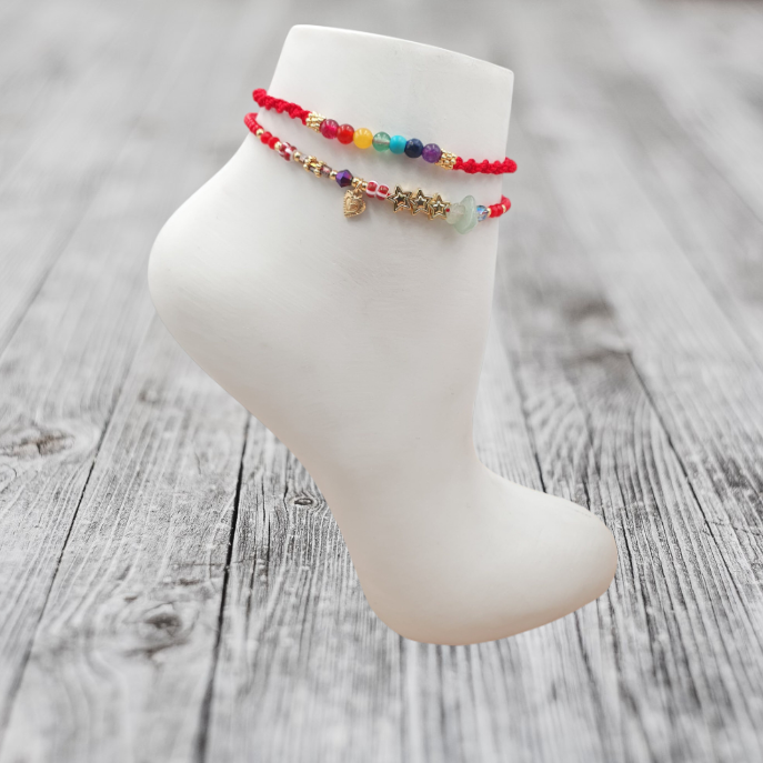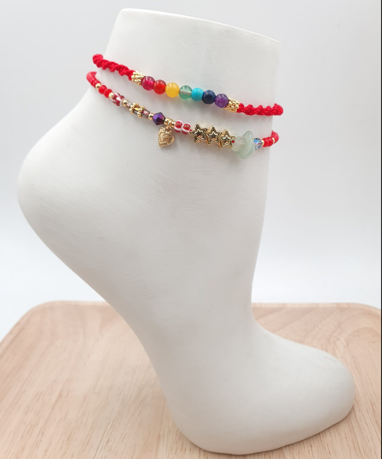 Tobillera artesanal inspirada en el equilibrio de los 7 chakras, creada para mujeres que buscan accesorios con significado, belleza y durabilidad.